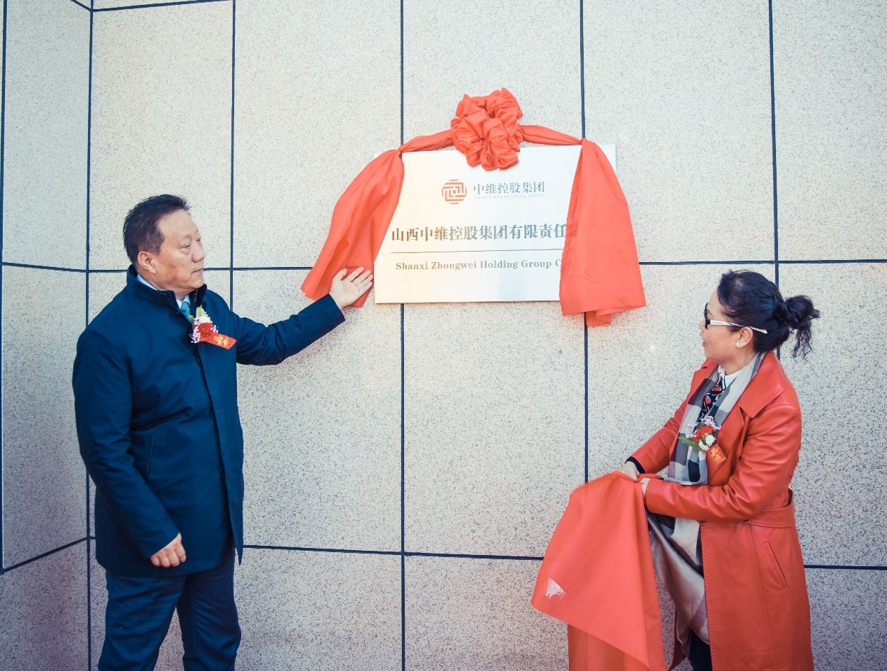 伴隨著陣陣鑼鼓、禮炮齊放,活動進(jìn)行到高潮,中維控股集團(tuán)董事長郭秀忠先生、副董事長王文萍女士共同為山西中維控股集團(tuán)有限責(zé)任公司揭牌。