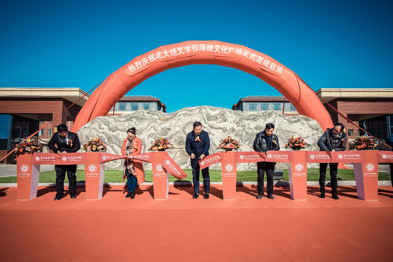 冬季風(fēng)吹去霾天, 日出和煦照學(xué)園,暖心溫度人愜意, 信鴿舉翼道平安。11月25日上午,北大培文晉中實(shí)驗學(xué)校又一次迎來具有里程碑意義的盛事——學(xué)校正門及博雅文化廣場落成啟用典禮。