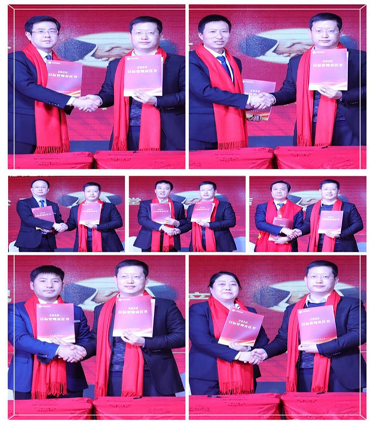 在介紹集團(tuán)組織框架和集團(tuán)、各子公司高管后,各位高管與郭雅磊總裁簽訂《目標(biāo)管理責(zé)任書》,部分單位的高管帶領(lǐng)管理團(tuán)隊(duì)進(jìn)行工作動(dòng)員表態(tài),向集團(tuán)保證完成2020年工作任務(wù)。