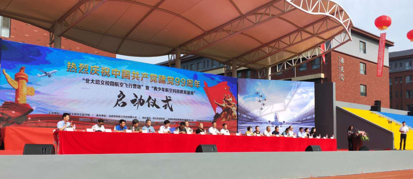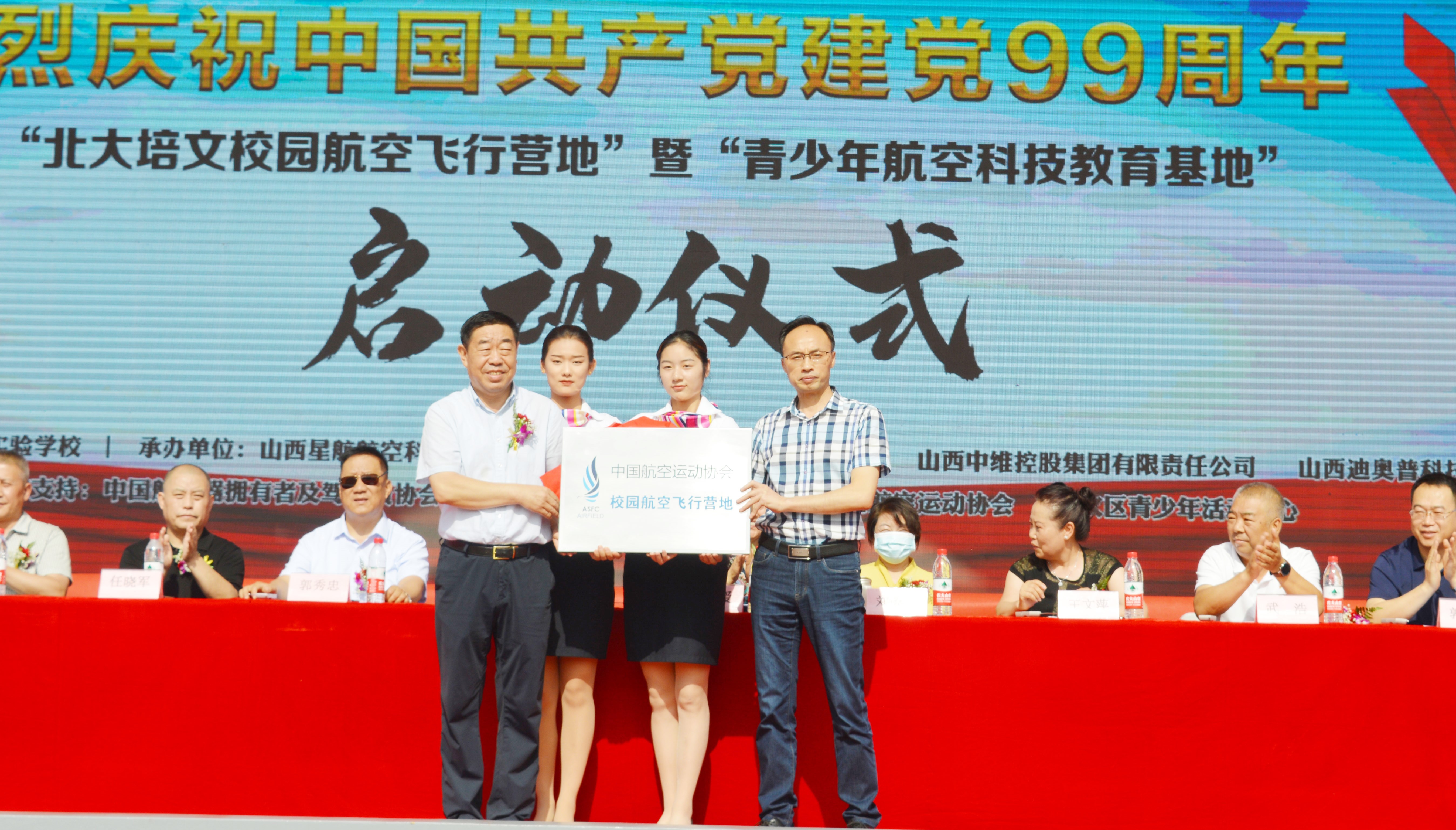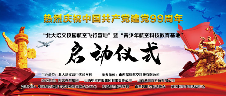 在中國共產(chǎn)黨誕辰99周年之際,為了進(jìn)一步培養(yǎng)青少年的航空愛國精神、全面推動山西省航空特色教育發(fā)展,實現(xiàn)省通用航空產(chǎn)業(yè)的全鏈接。北大培文晉中實驗學(xué)校于2020年7月1日上午八點隆重舉行了“校園航空飛行營地”暨“青少年航空科技教育基地”啟動儀式。