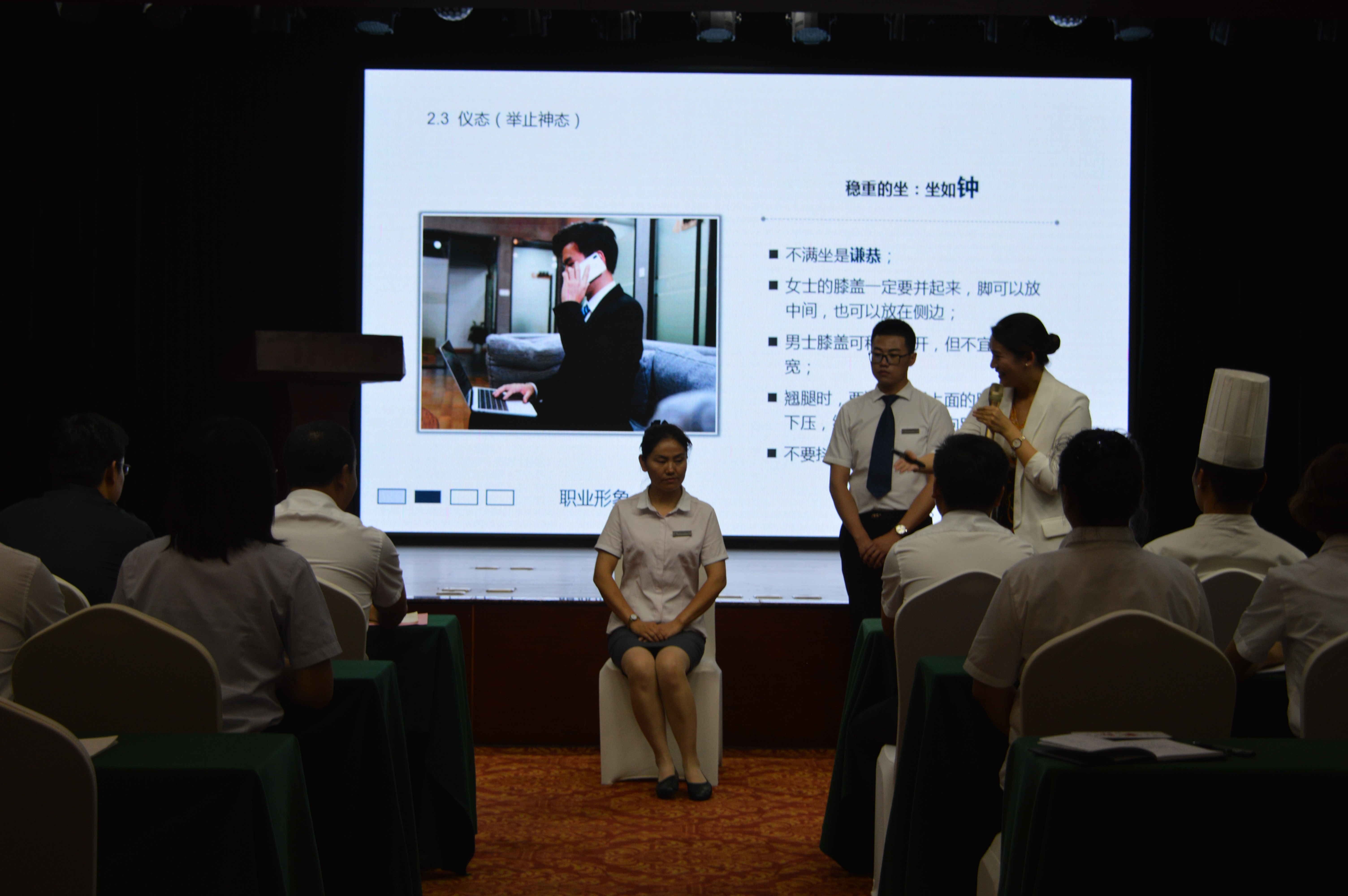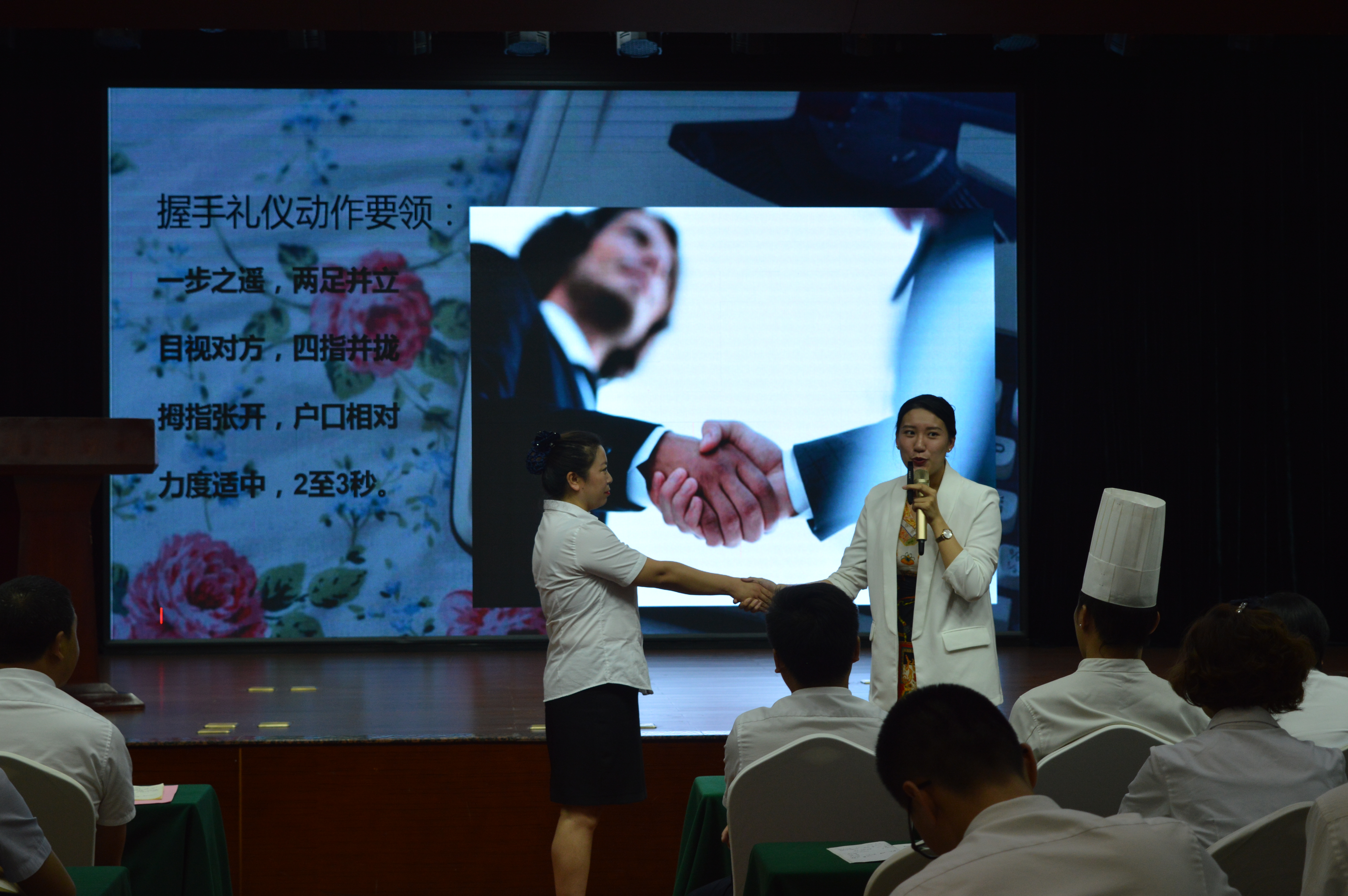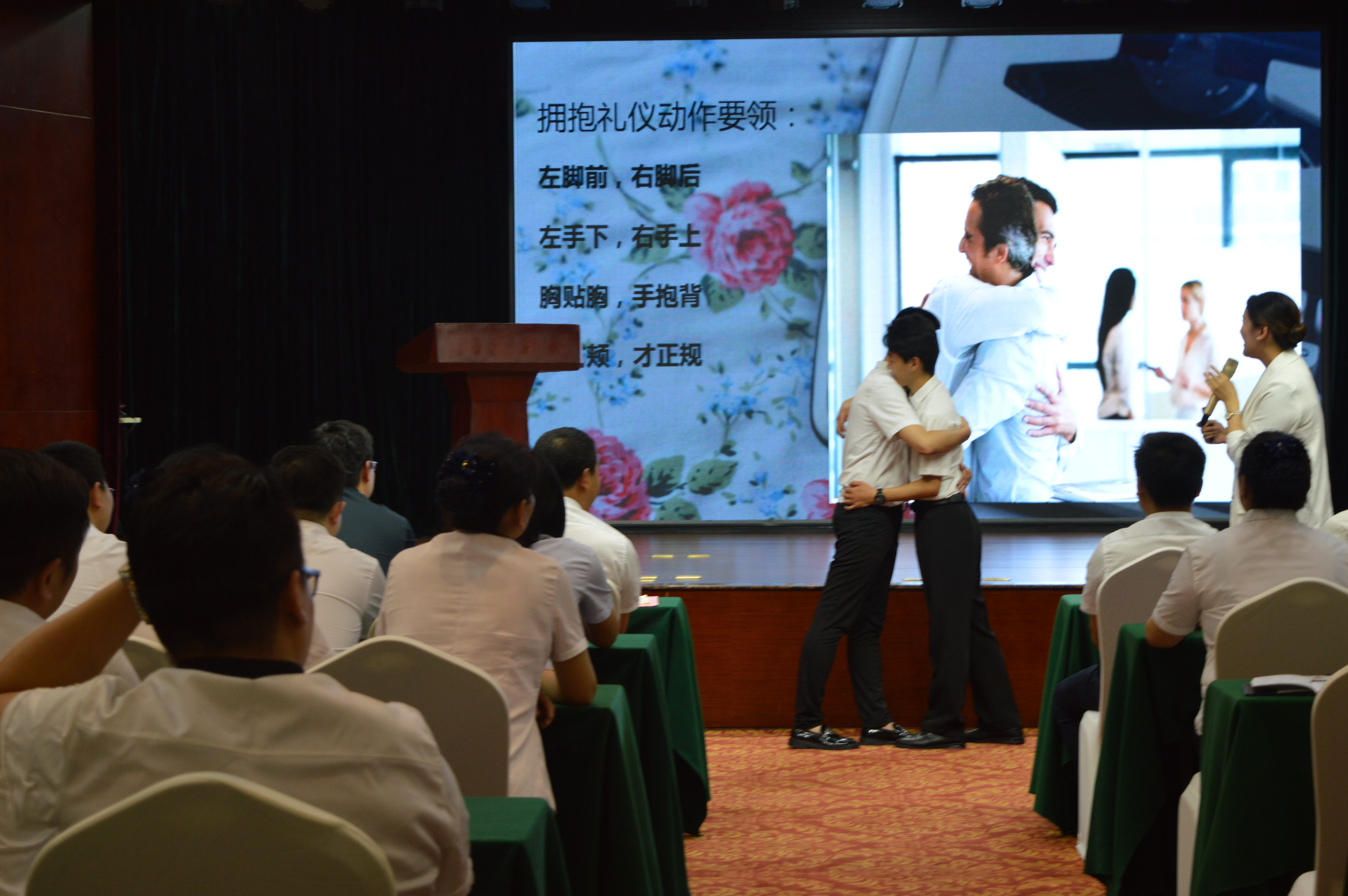 嘉賓曹老師為大家進(jìn)行了精彩而生動(dòng)的服務(wù)禮儀培訓(xùn),曹老師從日常的儀表、站姿、坐姿、行走、擁抱、握手、鞠躬等禮儀規(guī)范方面,邀請(qǐng)現(xiàn)場(chǎng)員工互動(dòng)參與并示范講解,另外通過案例與影片分享,闡釋了服務(wù)美學(xué)的重要意義,以及如何從基本的服務(wù)到滿意的服務(wù)再到感動(dòng)的服務(wù)?,F(xiàn)場(chǎng)教學(xué)氛圍活躍,精彩處引發(fā)陣陣掌聲。