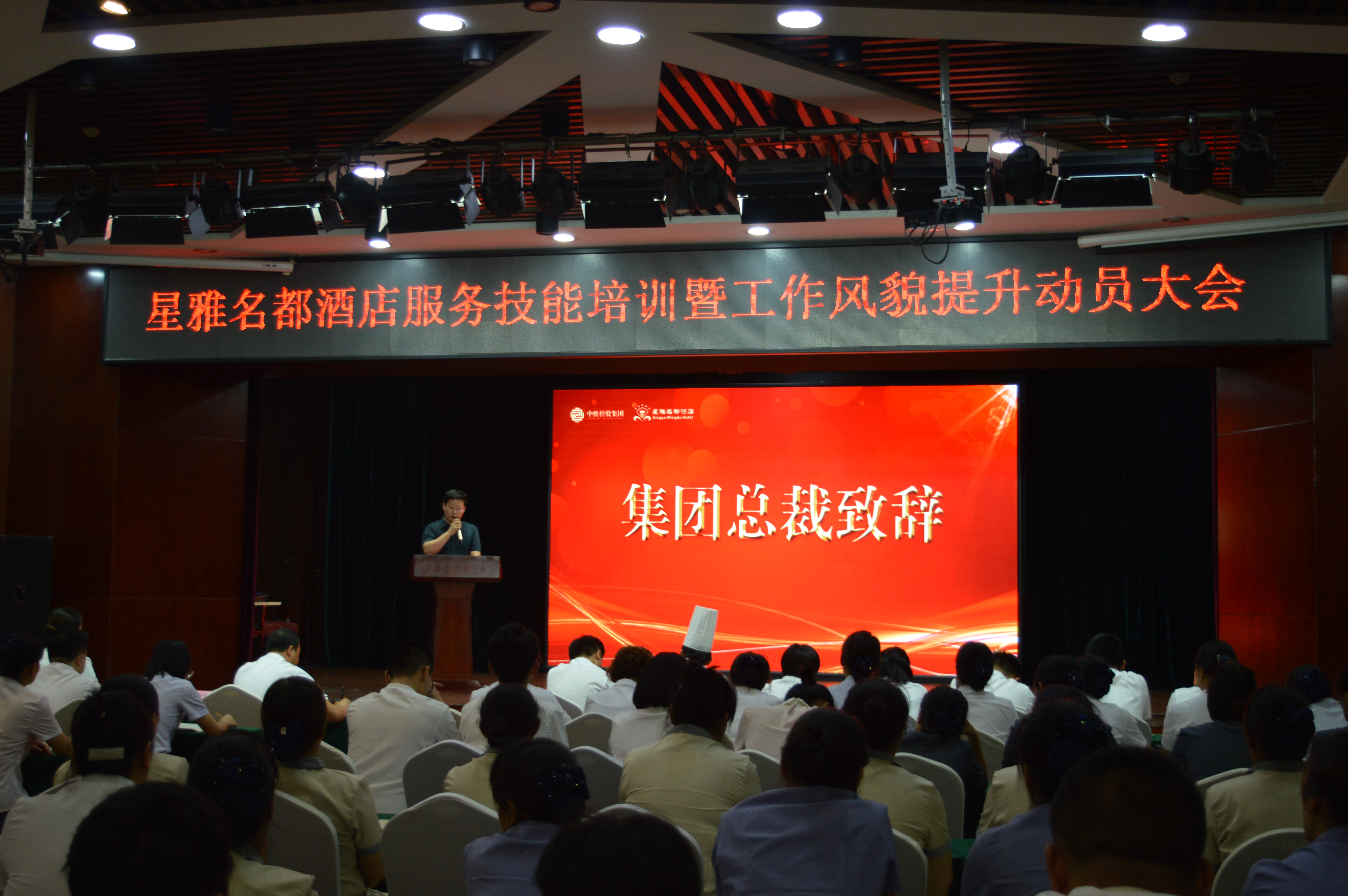 為積極響應(yīng)集團(tuán)公司“解放思想、改革創(chuàng)新”總體動(dòng)員令,持續(xù)提升酒店服務(wù)品質(zhì),強(qiáng)化員工紀(jì)律作風(fēng),2020年8月3日下午,由集團(tuán)綜合部組織,星雅酒店員工參與,召開了“服務(wù)技能培訓(xùn)暨工作風(fēng)貌提升動(dòng)員大會(huì)”,集團(tuán)總裁郭雅磊先生出席本次大會(huì)并做重要講話。