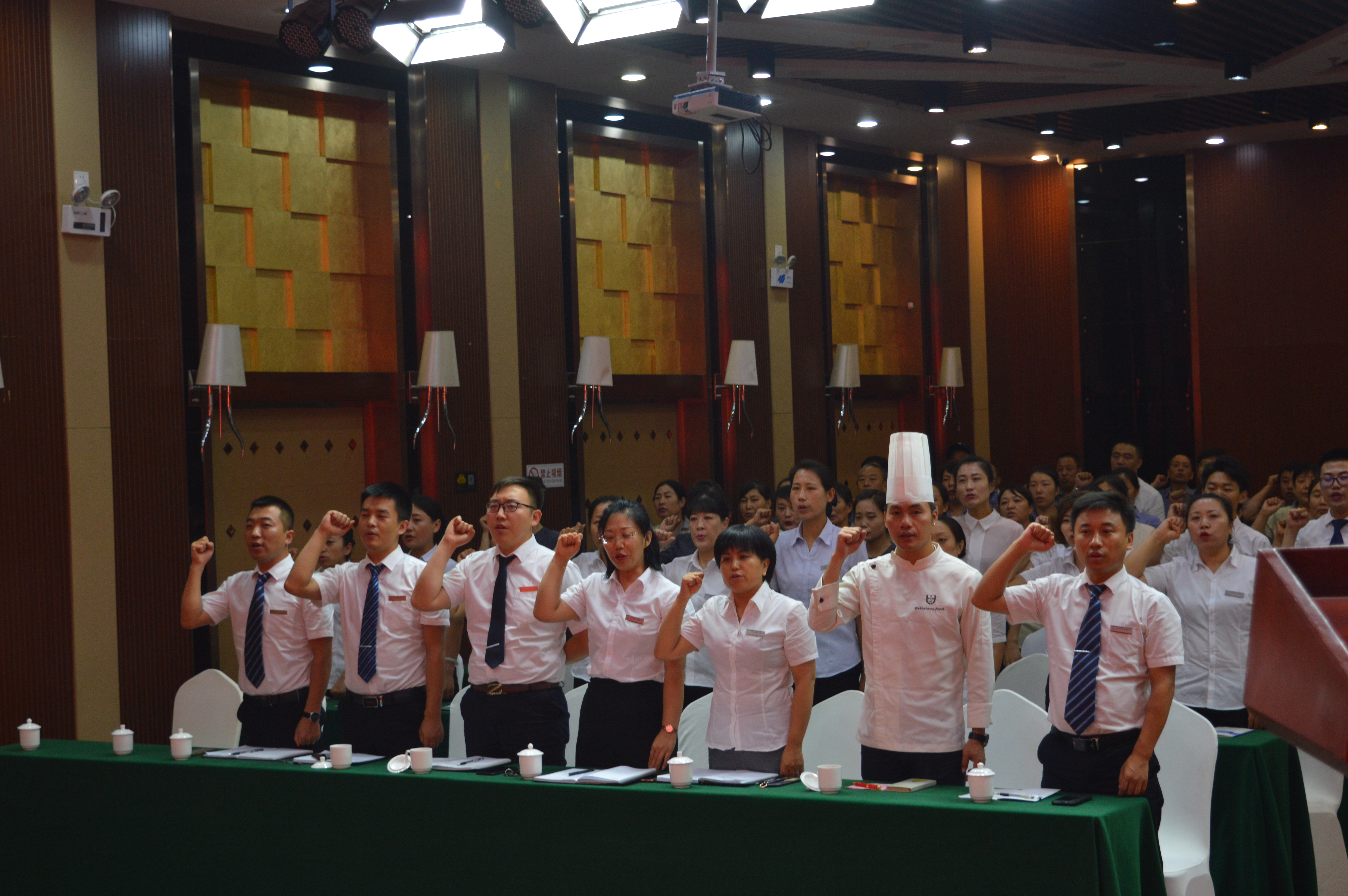 最后,全體人員齊誦星雅名都店訓(xùn),大會(huì)在整齊劃一、鏗鏘有力的聲浪下圓滿閉幕!同時(shí),星雅酒店服務(wù)技能培訓(xùn)正式起航!