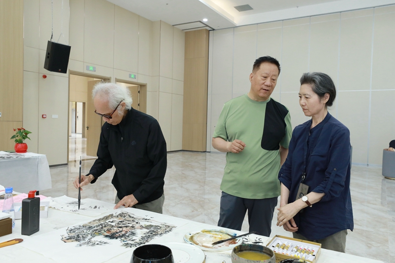 大師們沉浸創(chuàng)作,觀者屏息凝神??諝庵袕浡闩c專注,每一次落筆都引來由衷贊嘆,充分展現(xiàn)了中華書畫藝術(shù)的獨特魅力與勃勃生機。