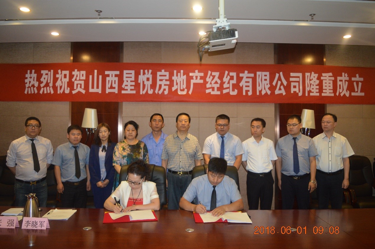 2018年6月1日上午9時,“山西星悅房地產(chǎn)經(jīng)紀有限公司成立大會暨簽約儀式”在星雅名都酒店4樓會議廳隆重舉行。集團董事長總裁郭秀忠、副總裁王文萍、郭雅維、董事長助理沈習(xí)寧、經(jīng)...