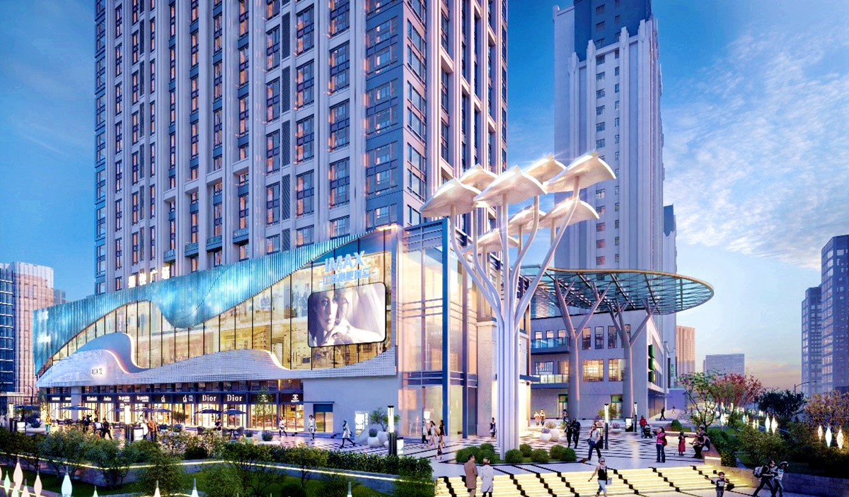 南側(cè)地塊為商業(yè)地塊,命名星悅廣場(chǎng),2棟稀缺復(fù)式公寓,2棟輕奢小戶(hù)型和3棟獨(dú)立商業(yè)。下沉式商業(yè)廣場(chǎng)為主,充分滿(mǎn)足小區(qū)及區(qū)域的商業(yè)配套,下沉式商業(yè)廣場(chǎng)兼容了購(gòu)物、休閑和娛樂(lè)的功能,足不出戶(hù)滿(mǎn)足業(yè)主的綜合需求,旨在將該廣場(chǎng)打造為大學(xué)城的時(shí)尚商業(yè)綜合體。除此之外,該地塊還配建有兩個(gè)大型的生活廣場(chǎng),一個(gè)為體健廣場(chǎng),一個(gè)為音樂(lè)廣場(chǎng),充分滿(mǎn)足了業(yè)主及周邊人口的運(yùn)動(dòng)及休閑需求。
